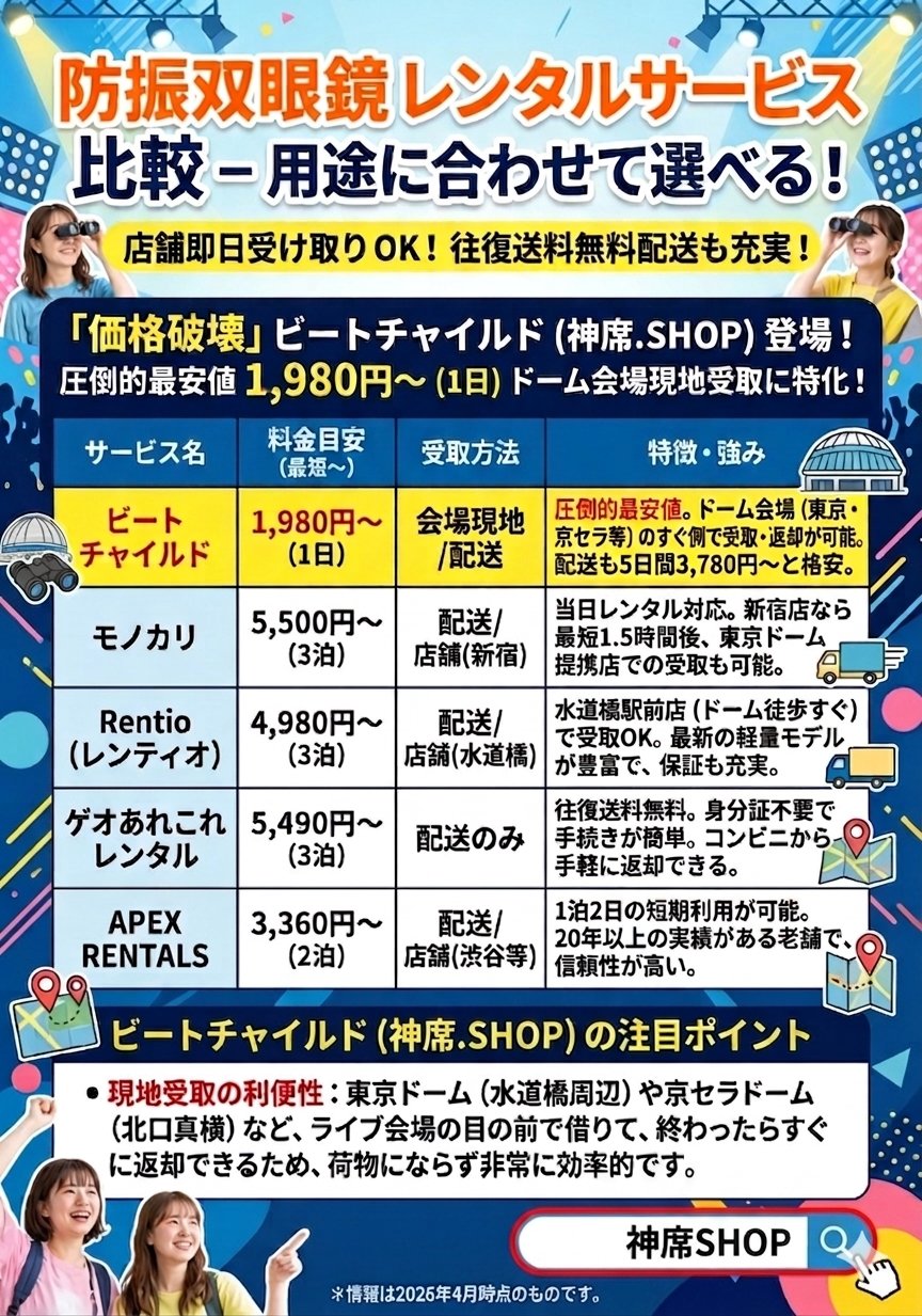 防振双眼鏡レンタル 当日現地1980円レンタル&宅配5日間3780円